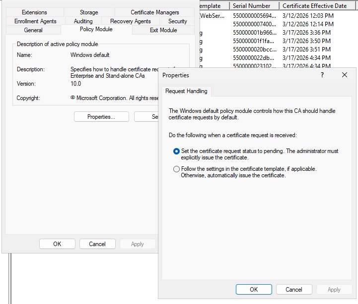 This is a stand-alone Microsoft CA, not enterprise template-based ADCS.