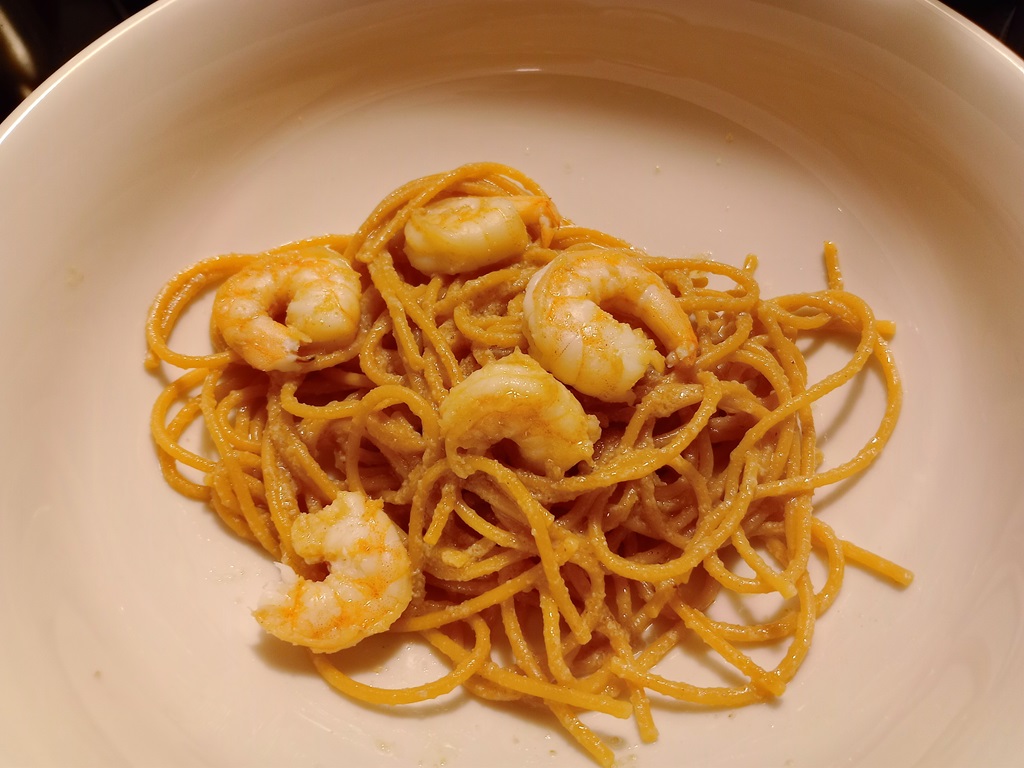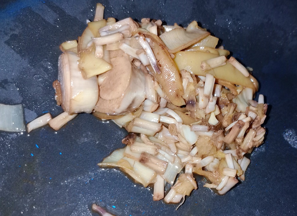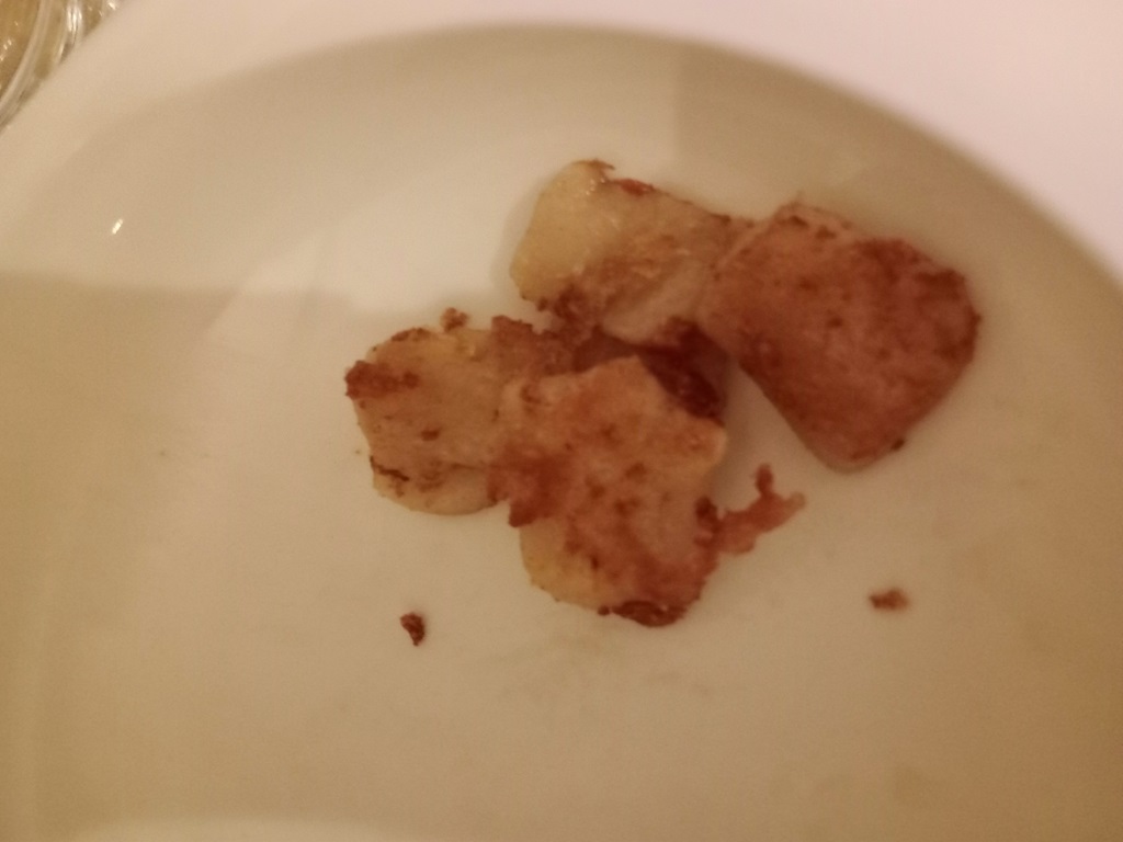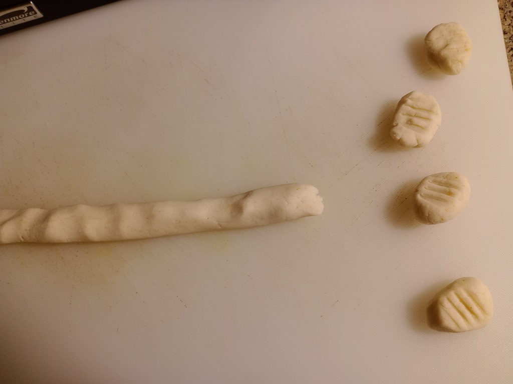 The gnocci was boiled for about three minutes in salted water then fried in olive oil to crisp up. They were really gelatinous after boiling. I think it would have been better to sit and dry before frying.
